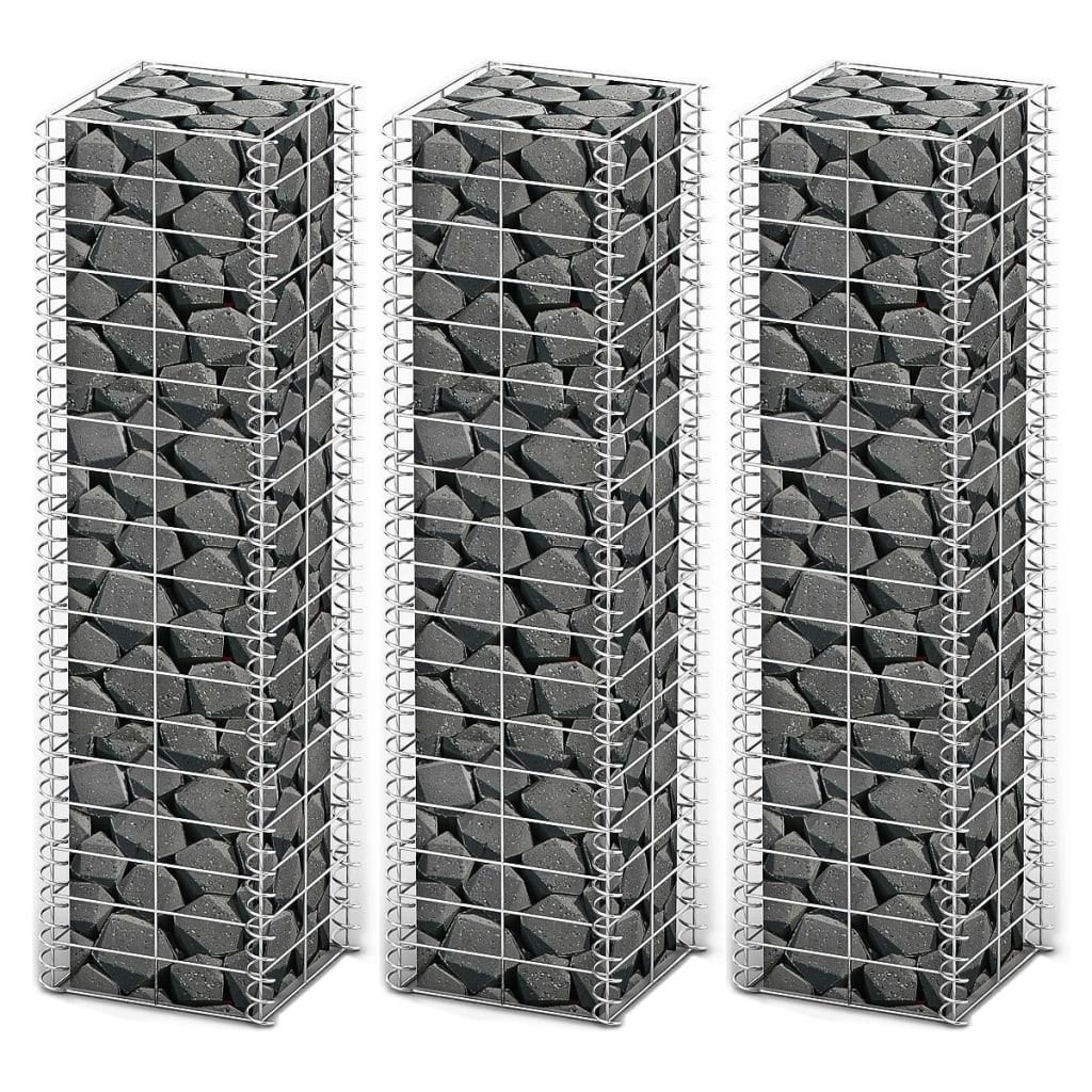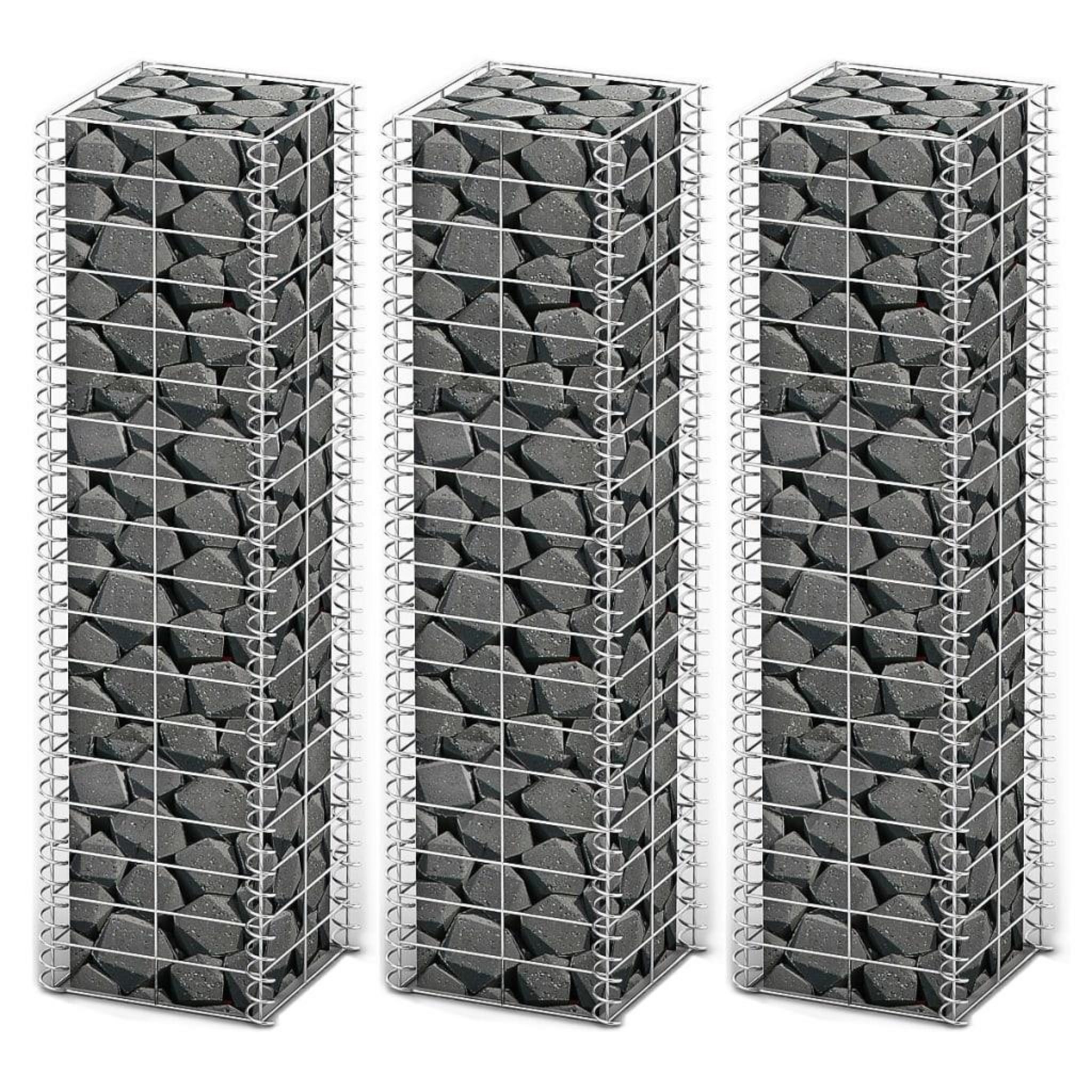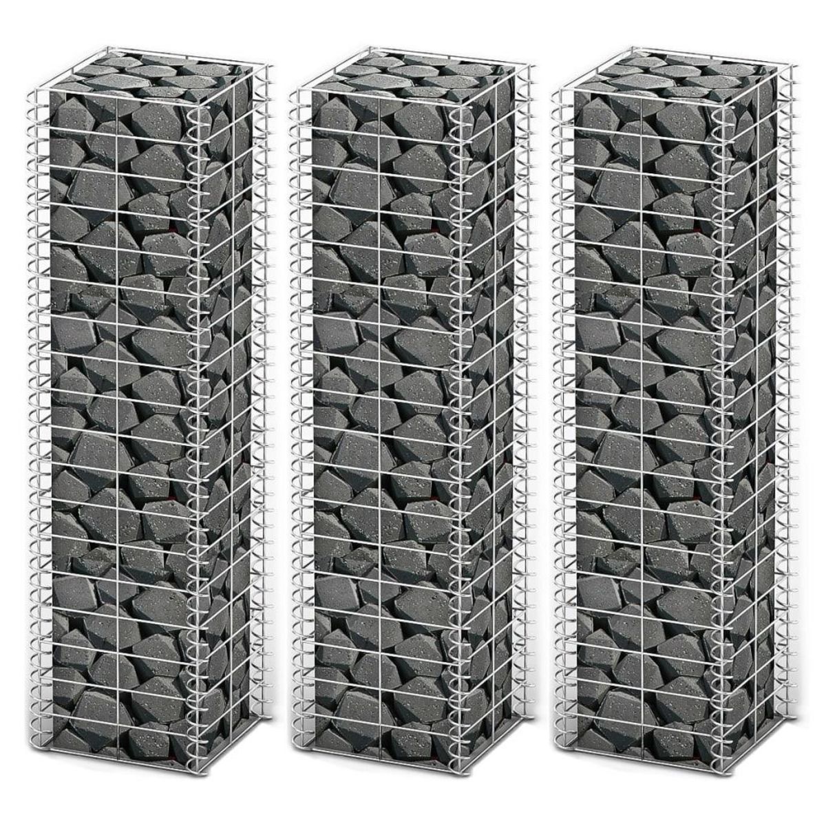 Jeu de panier de gabion 3 pcs Fil galvanise 25x25x100 cm