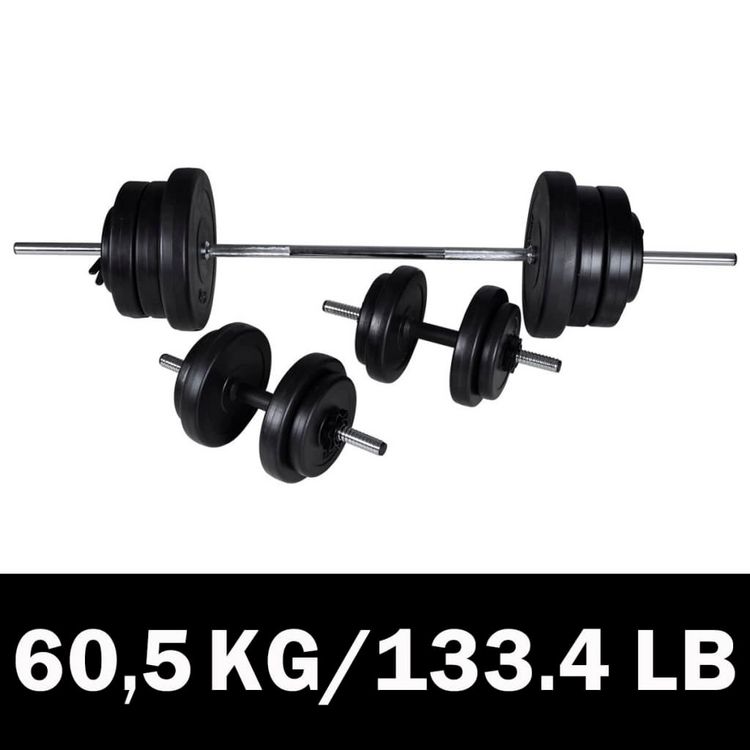 Kit de barre d'haltere et 2 halteres 60,5 kg