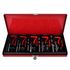 La livraison comprend 5 forets en acier rapide, 5 tarauds en acier rapide, 5 outils d'insertion, 5 cassures de soie et 110 inserts filetes en acier dans une mallette de transport.