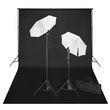 Cet ensemble comprend un systeme de support d'arriere-plan complet et une toile de fond noire extra large (600 x 300 cm). Un kit d'eclairage est egalement inclus. Ce kit comprend 2 lampes a lumiere du jour avec parapluies. La puissance de chaque lampe est de 24 watts (la puissance effective est equivalente a 100 watts).