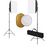 Les lampes de studio professionnelles sont conçues pour adoucir les flux lumineux et supprimer les ombres pour une prise de vue parfaite. La lampe de studio softbox est livree avec un trepied en acier stable et robuste qui est reglable en hauteur de 90 a 208 cm pour mieux repondre a vos besoins. De plus, le trepied a un filetage standard 1/4 pour tous les appareils photo analogiques et numeriques. L'ensemble de reflecteurs comprend un reflecteur rond 5 en 1 et un reflecteur ellipse 2 en 1. Chaque reflecteur est livre avec des panneaux de surface differents. Vous pouvez travailler avec differentes combinaisons pour des lumieres plus chaudes ou plus froides. Avec le sac de transport inclus, le kit de studio est facile a ranger et a transporter.