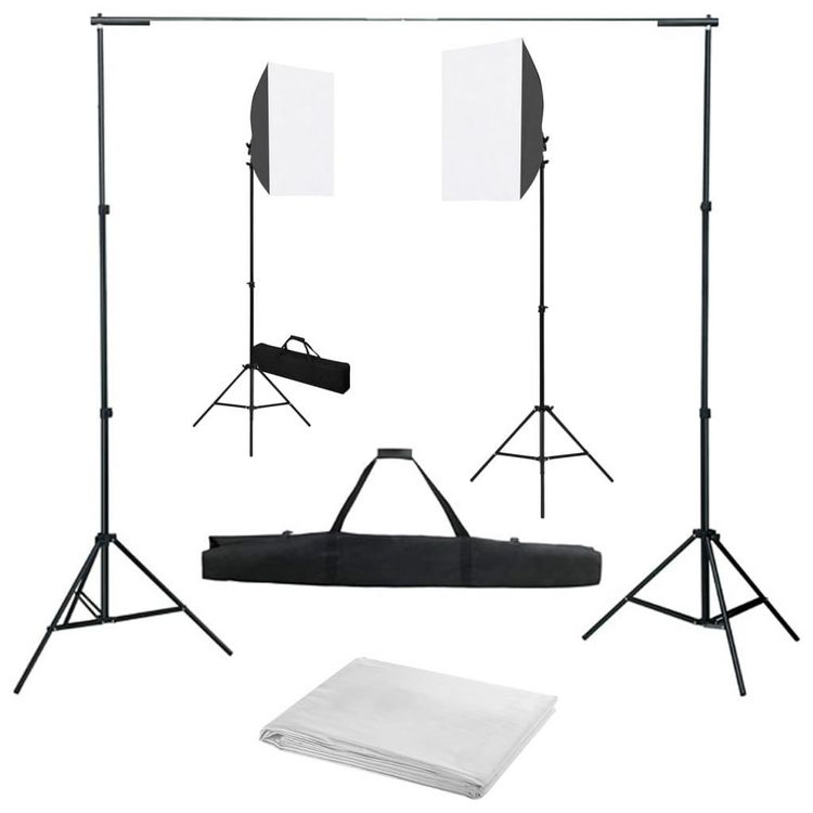Kit de studio photo avec boîtes a lumiere et toile de fond