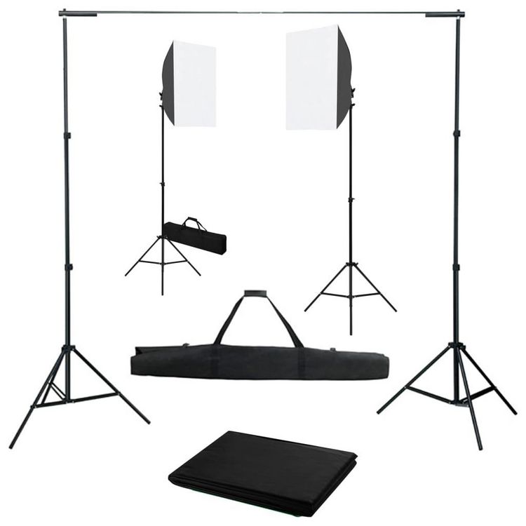 Kit de studio photo avec boîtes a lumiere et toile de fond