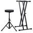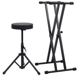 Ce kit professionnel combine un support à empattement double et un tabouret pliable, conçus pour les répétitions et performances musicales. Le support en acier offre une stabilité exceptionnelle avec une hauteur réglable de 29 à 79 cm, s'adaptant à tous les types de claviers et synthétiseurs.