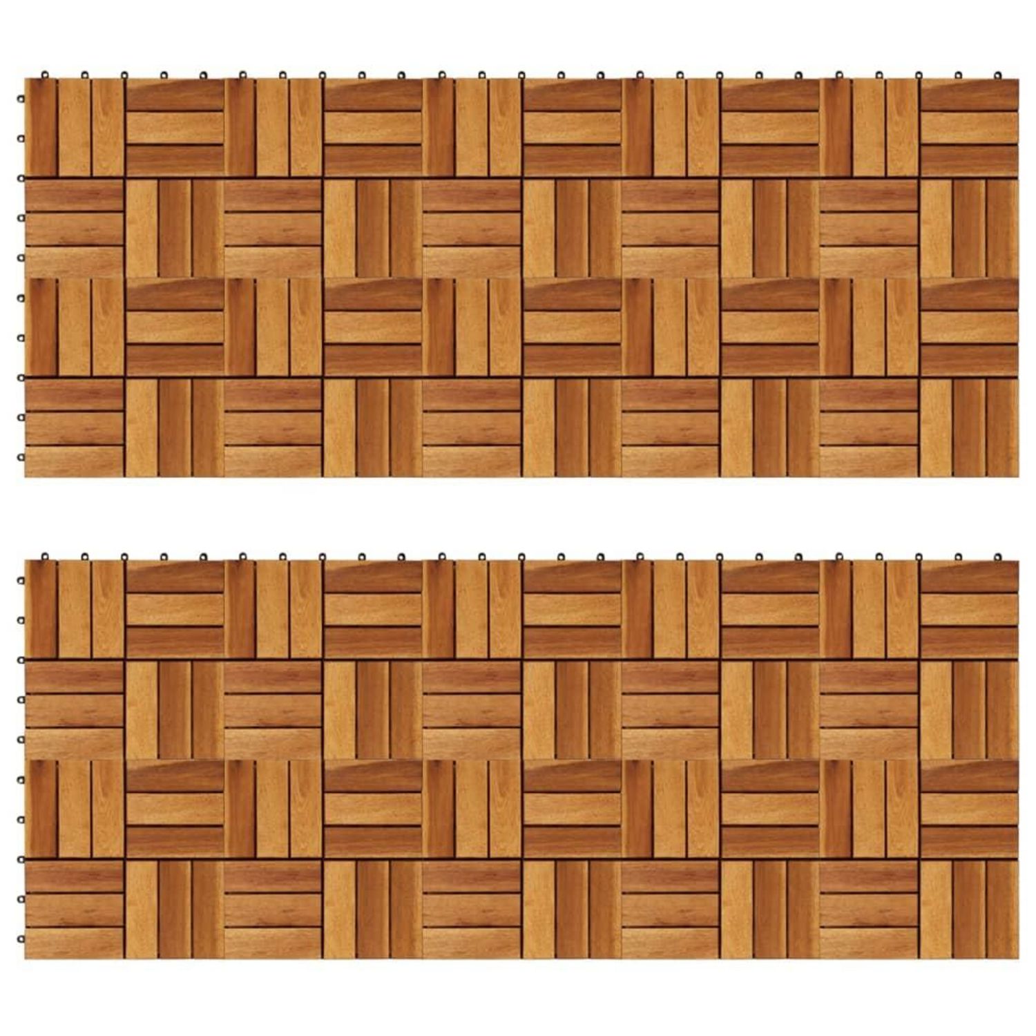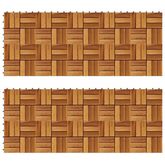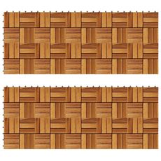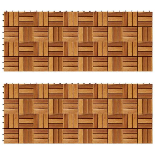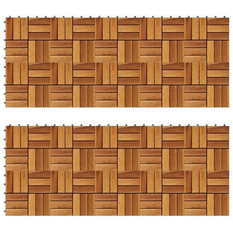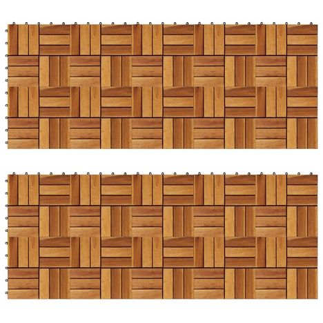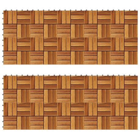 Cet ensemble de 20 tuiles de terrasse en bois dur sera parfait pour orner les surfaces ou les allees dans votre jardin, sur votre terrasse ou balcon, ou dans toute autre piece. Le motif n'est pas seulement decoratif, mais ajoute une qualite antiderapante. Les carreaux de terrasse sont en bois d'acac