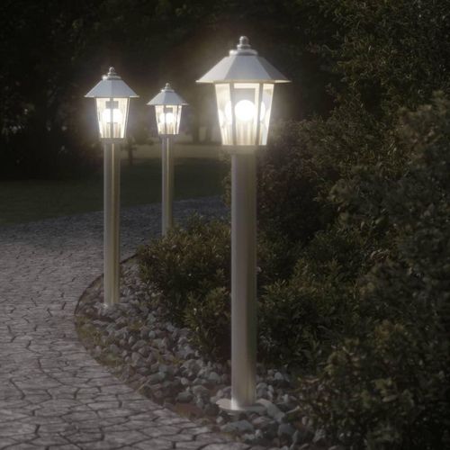 Lampadaires d'exterieur 3 pcs argente 80 cm acier inoxydable