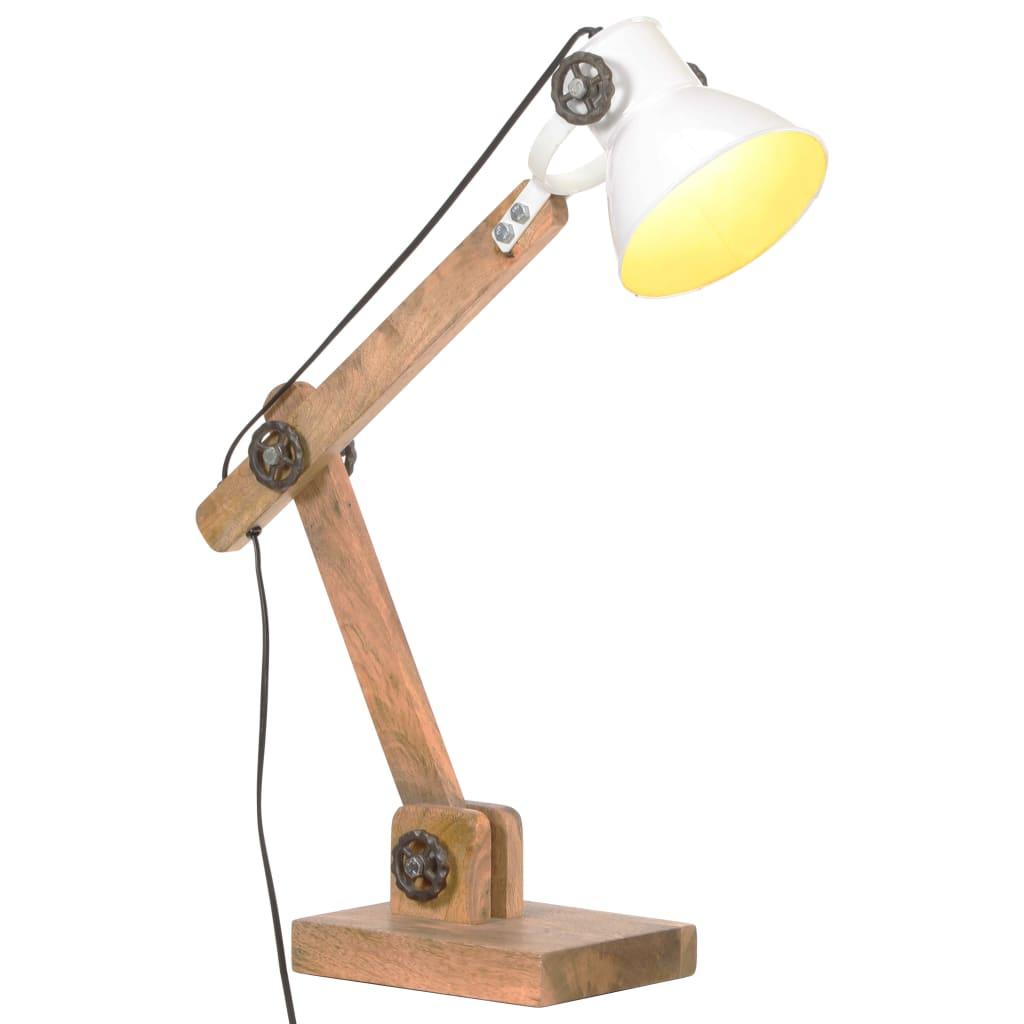La lampe de table est combinee avec un bras en bois de manguier massif et un abat-jour en fer, ce qui la rend durable et robuste. Le bras reglable et flexible vous permet de la fixer a n'importe quelle hauteur souhaitee. La finition marron grange vieilli sur le cadre en bois et la finition blanche sur l'abat-jour donnent le style industriel de la lampe. La lampe a une douille E27 pour une ampoule d'un maximum de 25 watts. Vous pouvez choisir et installer des ampoules E27 avec differentes couleurs de lumiere, creant une atmosphere de detente et de repos. En outre, cette lampe de table est livree avec une faible tension et peut etre econome en energie.