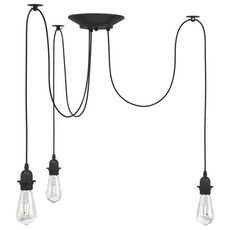 Lampe suspendue avec 3 porte-lampes E27 noir metal