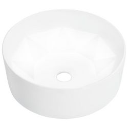 Fabrique en ceramique, ce lavabo de forme ronde avec design de diamant sera un supplement chic et intemporel a toute salle de bain, salle d'eau, vestiaire ou cabines de toilettes.