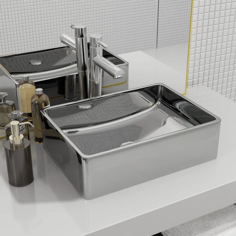 Lavabo 41 x 30 x 12 cm Ceramique Argente