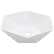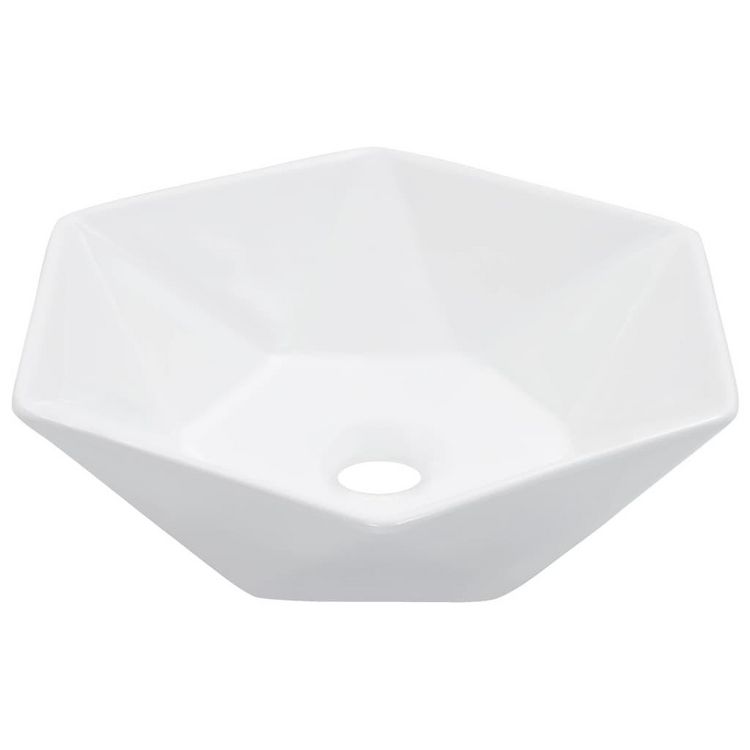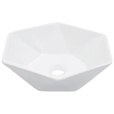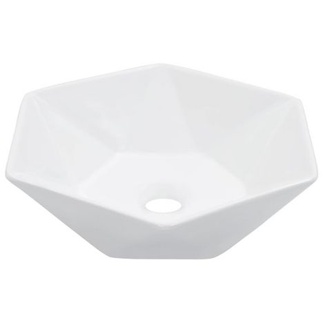 Fabrique en ceramique, ce lavabo de forme hexagonale sera un supplement chic et intemporel a toute salle de bain, salle d'eau, vestiaire ou cabines de toilettes.