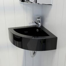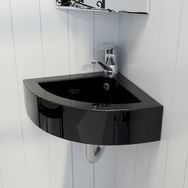 Fabrique en ceramique, ce lavabo d'angle sera un supplement chic et intemporel a toute salle de bain, salle d'eau, vestiaire ou cabines de toilettes.