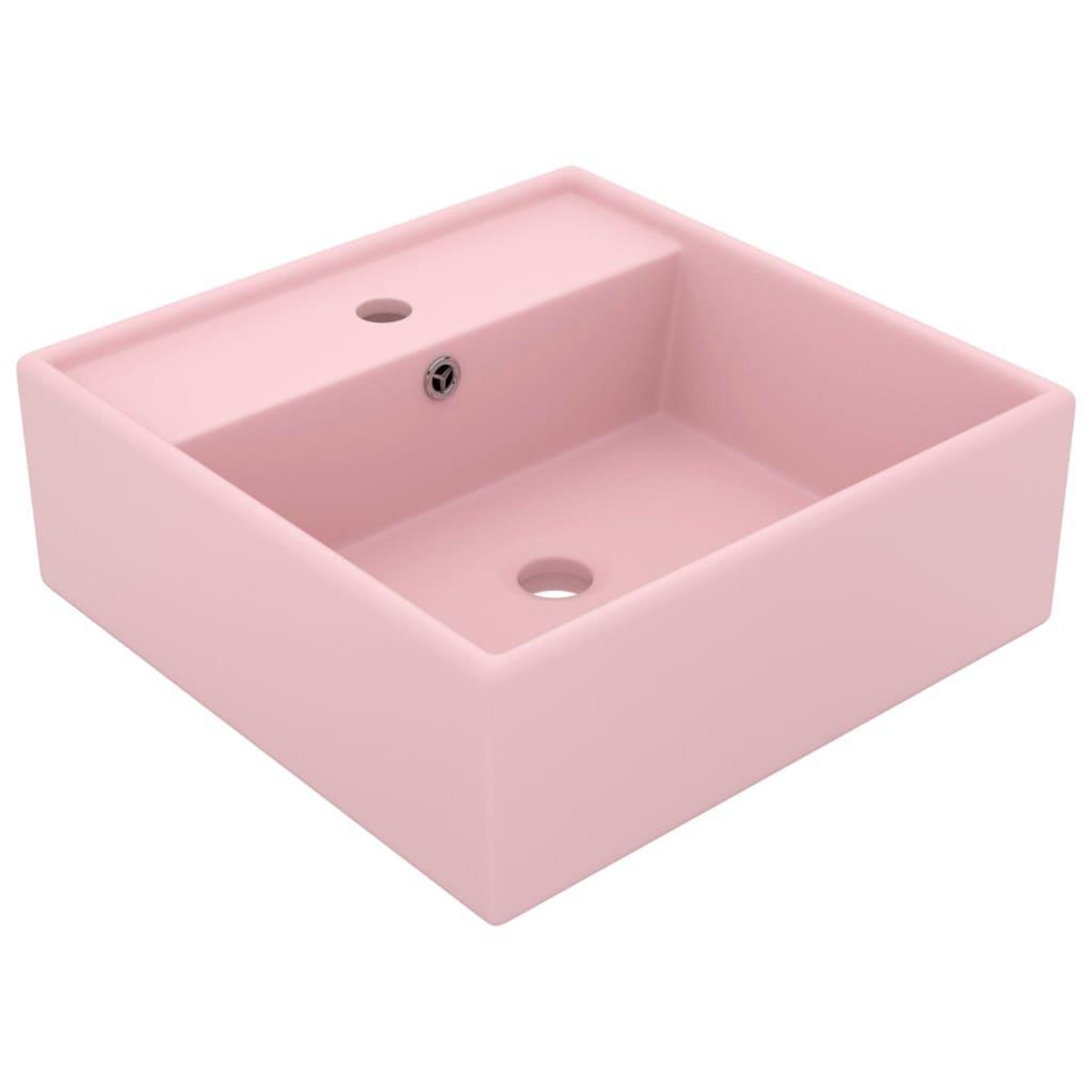 Lavabo carre de luxe a trop-plein Rose mat 41x41 cm Ceramique