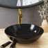 Ce lavabo de salle de bain a vasque circulaire avec robinet et drain a poussoir est conçu pour etre place sur le comptoir et attirer l'attention avec son style unique. Etant donne que le lavabo est fabrique a partir de verre entierement trempe, il supporte des temperatures plus elevees qui entrent e