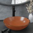 Ce lavabo de salle de bain a vasque circulaire avec robinet et drain a poussoir est conçu pour etre place sur le comptoir et attirer l'attention avec son style unique. Etant donne que le lavabo est fabrique a partir de verre entierement trempe, il supporte des temperatures plus elevees qui entrent e