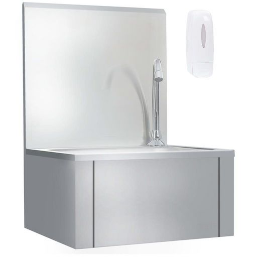 De plus, un robinet d'eau chaude et froide, un panneau arriere et un distributeur de savon sont inclus. Cette station de lavage des mains est facile a assembler et convient au montage mural.