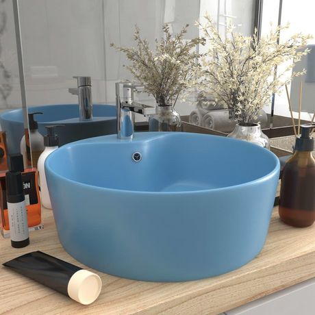 Lavabo de luxe avec trop-plein Bleu clair mat 36x13cm Ceramique