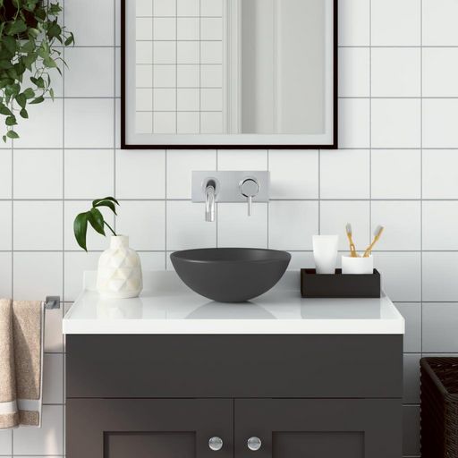 Lavabo de salle de bain Ceramique Gris fonce Rond