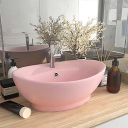 Lavabo ovale de luxe a trop-plein Rose mat 58,5x39 cm Ceramique