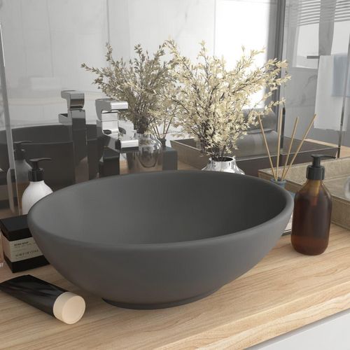 Lavabo ovale de luxe Gris fonce mat 40x33 cm Ceramique