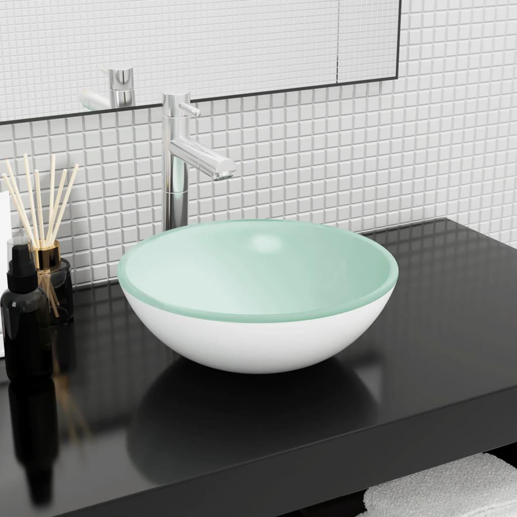 Ce lavabo en verre trempe sera un supplement elegant a toute salle de bain, toilette ou salle d'eau. Materiau durable : fabriquee en verre trempe, la vasque de salle de bains est durable et robuste. Elle est egalement facile a nettoyer avec un chiffon humide.Apparence moderne : ce lavabo attrayant a
