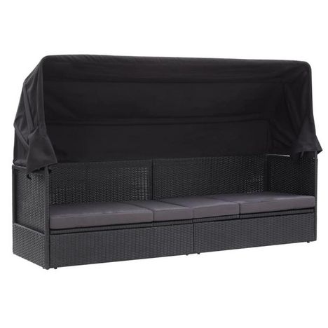 Lit canapé d'extérieur avec auvent résine tressée noir VIDAXL