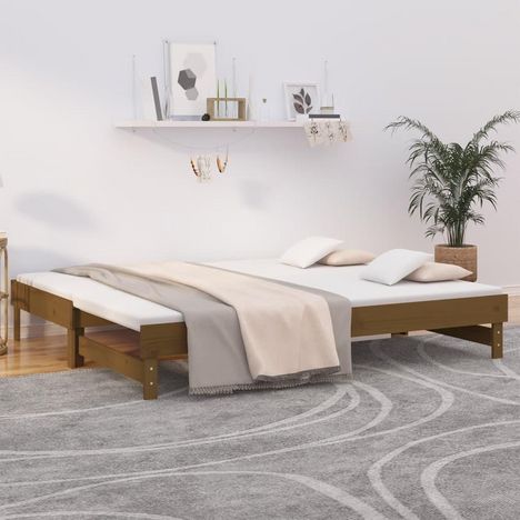 Lit coulissant sans matelas marron miel 2x(90x200) cm