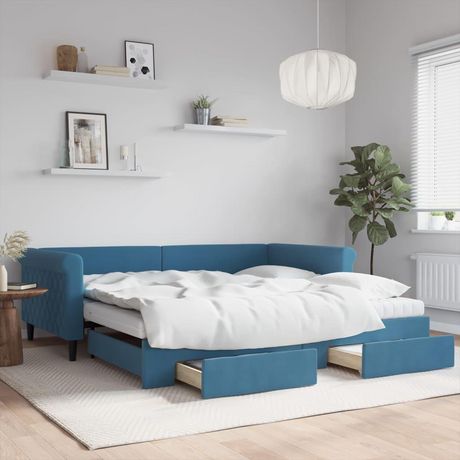 Lit de jour avec gigogne et tiroirs bleu 100x200 cm velours