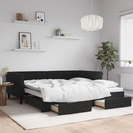 Lit de jour avec gigogne et tiroirs sans matelas noir 100x200cm