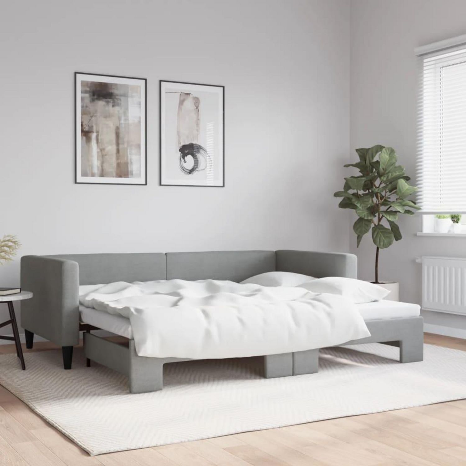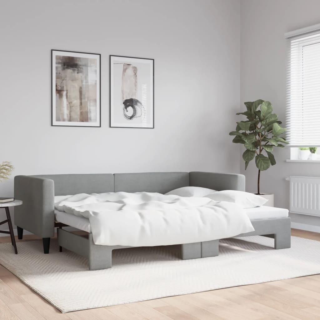 Lit de jour avec gigogne sans matelas gris clair 90x200 cm
