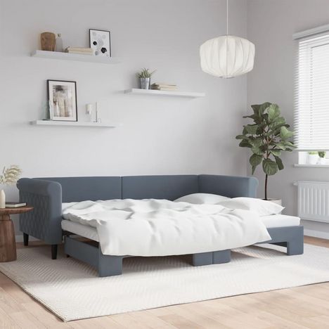 Lit de jour avec gigogne sans matelas gris fonce 90x200 cm