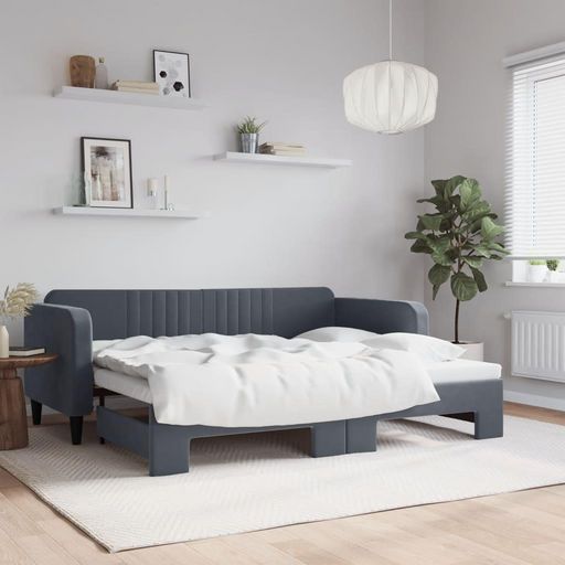 Lit de jour avec gigogne sans matelas gris fonce 90x200 cm