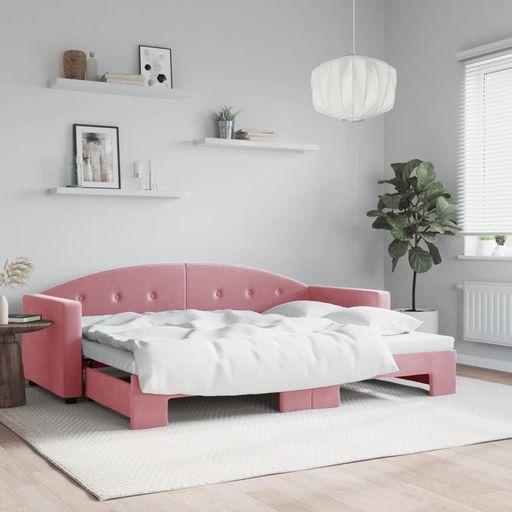 Lit de jour avec gigogne sans matelas rose 80x200 cm