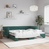 Lit de jour avec gigogne sans matelas vert fonce 90x200 cm