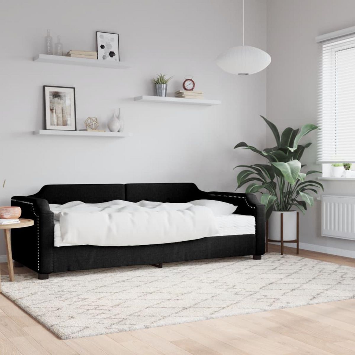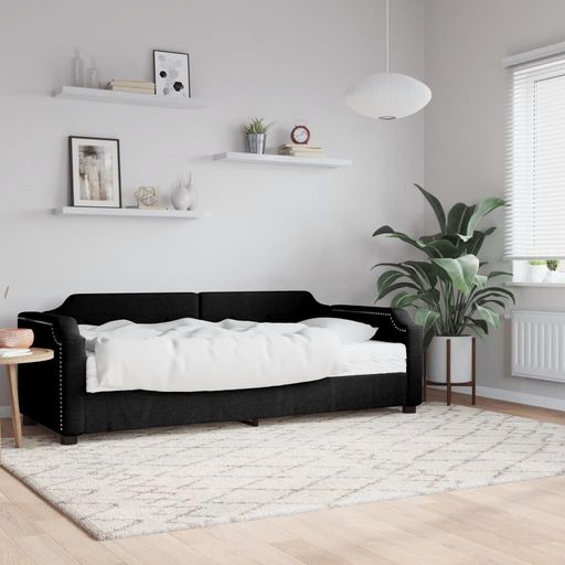 Lit de jour avec matelas noir 90x190 cm tissu