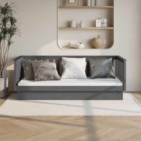 Lit de jour sans matelas gris 100x200 cm bois de pin massif