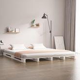 Lit de palette blanc 200x200 cm bois de pin massif