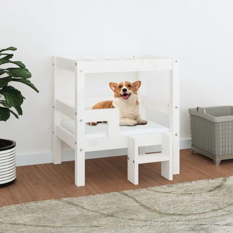Lit pour chien Blanc 55,5x53,5x60 cm Bois de pin solide