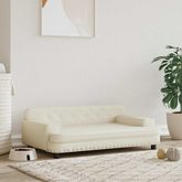 Offrez à votre ami à fourrure un endroit chaud et confortable pour se détendre avec ce lit pour chiens ! Matériau confortable et doux : le canapé pour animaux de compagnie est rembourré de mousse épaisse et douce et recouvert de similicuir, offrant un soutien suffisant et un confort supérieur pour que votre adorable animal de compagnie puisse s'y reposer.Cadre robuste et durable : le cadre en bois de pin massif assure la robustesse et la durabilité du canapé pour chien. Les quatre pieds ajoutent également une stabilité supplémentaire.Nettoyage facile : le revêtement en similicuir de ce canapé pour chien est imperméable, résistant à la saleté et facile à essuyer et à nettoyer.Design élégant : ce canapé pour chien s'adapte parfaitement à tous les thèmes de décoration et constitue un excellent complément à votre salon ou à votre chambre à coucher. Remarque :Veuillez mesurer la longueur du corps de votre animal de compagnie avant d'acheter. Couleur : CrèmeMatériau : similicuir (100% polyuréthane), bois de pin massif, plastiqueMatériau de remplissage : mousseDimensions : 90 x 53 x 30 cm (l x P x H)Taille de la surface de couchage : 68 x 48 cm (l x P)Capacité de charge maximale : 50 kgConvient aux petits chiens et animaux de compagnieL'assemblage est requisCouleur : CrèmeMatériau : similicuir (100% polyuréthane), bois de pin massif, plastiqueMatériau de remplissage : mousseDimensions : 90 x 53 x 30 cm (l x P x H)Taille de la surface de couchage : 68 x 48 cm (l x P)Capacité de charge maximale : 50 kgConvient aux petits chiens et animaux de compagnieL'assemblage est requis
