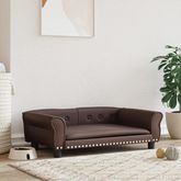 En savoir +Offrez à votre ami à fourrure un endroit chaud et confortable pour se détendre avec ce lit pour chiens ! Matériau confortable et doux : le canapé pour animaux de compagnie est rembourré de mousse épaisse et douce et recouvert de similicuir, offrant un soutien suffisant et un confort supérieur pour que votre adorable animal de compagnie puisse s'y reposer.Cadre robuste et durable : le cadre en bois de pin massif assure la robustesse et la durabilité du canapé pour chien. Les quatre pieds ajoutent également une stabilité supplémentaire.Nettoyage facile : le revêtement en similicuir de ce canapé pour chien est imperméable, résistant à la saleté et facile à essuyer et à nettoyer.Design élégant : ce canapé pour chien s'adapte parfaitement à tous les thèmes de décoration et constitue un excellent complément à votre salon ou à votre chambre à coucher. Remarque :Veuillez mesurer la longueur du corps de votre animal de compagnie avant d'acheter. Couleur : marronMatériau : similicuir (100 % chlorure de polyvinyle), bois de pin massif, plastiqueMatériau de remplissage : mousseDimensions : 95 x 55 x 30 cm (l x P x H)Taille de la surface de couchage : 72,5 x 48,5 cm (l x P)Capacité de charge maximale : 50 kgConvient aux petits chiens et animaux de compagnieL'assemblage est requis Soyez conscient du risque de feux ouverts et d'autres sources de forte chaleur à proximité du produit.Couleur : marronMatériau : similicuir (100 % chlorure de polyvinyle), bois de pin massif, plastiqueMatériau de remplissage : mousseDimensions : 95 x 55 x 30 cm (l x P x H)Taille de la surface de couchage : 72,5 x 48,5 cm (l x P)Capacité de charge maximale : 50 kgConvient aux petits chiens et animaux de compagnieL'assemblage est requis