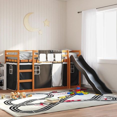 Lit superpose sans matelas avec toboggan blanc noir 90x200 cm