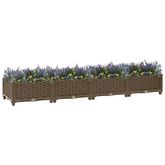 Cette jardiniere est fabriquee en polypropylene, ce qui la rend robuste, resistante a l'usure et adaptee a une utilisation quotidienne a l'exterieur. Le pot de jardin est assez profond et large pour contenir une grande quantite de terre et offre suffisamment d'espace pour vos plantes, legumes, herbes et fleurs. Creez une belle toile de fond pour vos plantes avec ce lit de plantation elegant !