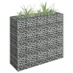 Le gabion robuste est conçu pour etre rempli de roches ou de gravier. Fabrique en acier galvanise antirouille et resistant aux intemperies, le gabion est tres stable et durable. Les fils transversaux et longitudinaux soudes a chaque intersection offrent une stabilite supplementaire a la jardiniere a gabion et fonctionnent egalement comme une grille maillee.