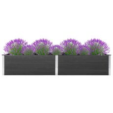 La jardiniere est en composite bois-plastique (WPC), ce qui la rend durable, resistante aux intemperies et adaptee a une utilisation exterieure. Elle peut accueillir un nombre considerable de plantes et de fleurs vertes.