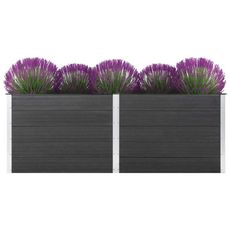 La jardiniere est en composite bois-plastique, ce qui la rend durable, resistante aux intemperies et adaptee a une utilisation exterieure. Elle peut accueillir un nombre considerable de plantes et de fleurs vertes.