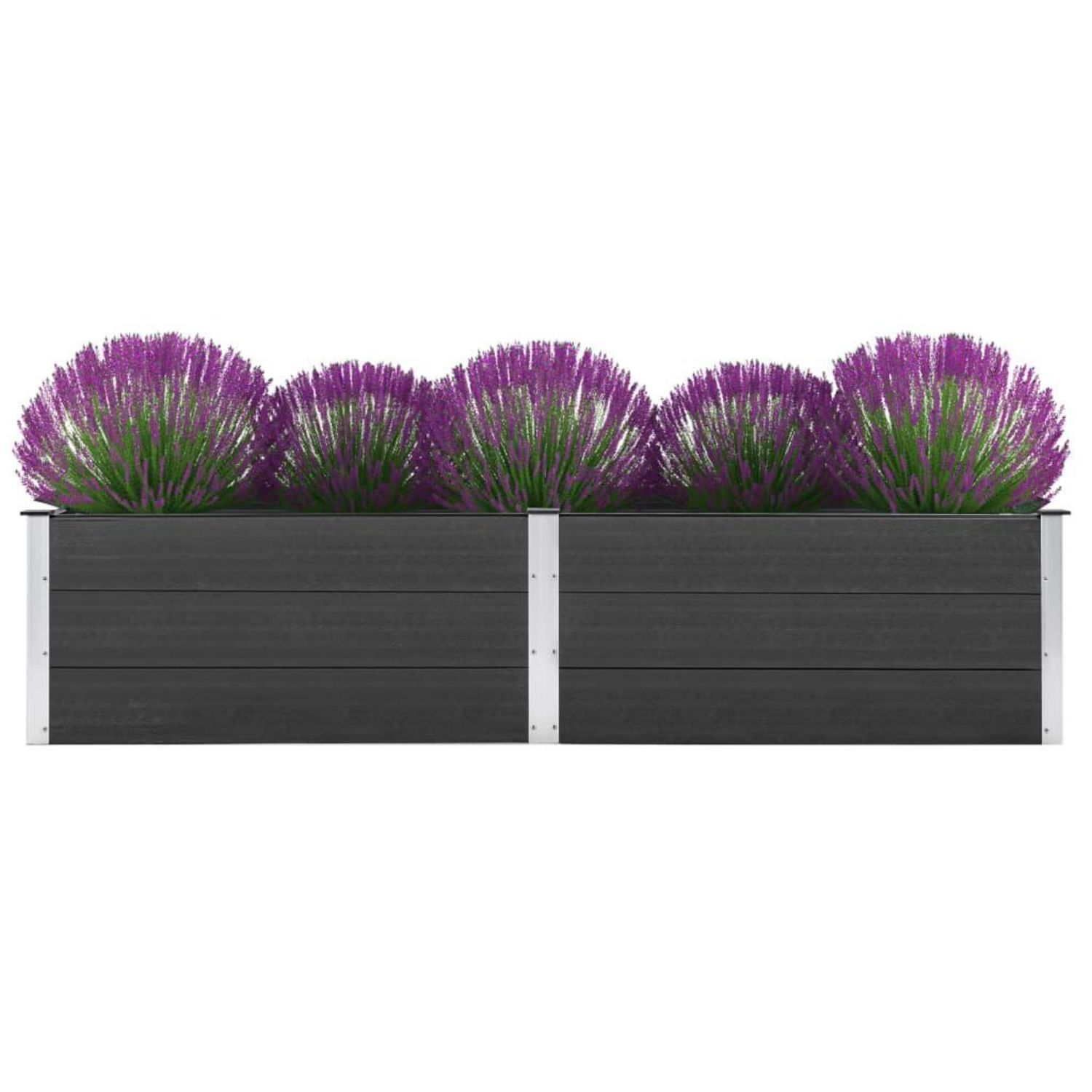 La jardiniere est en composite bois-plastique, ce qui la rend durable, resistante aux intemperies et adaptee a une utilisation exterieure. Elle peut accueillir un nombre considerable de plantes et de fleurs vertes.