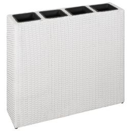 Lit sureleve de jardin avec 4 pots Resine tressee Blanc