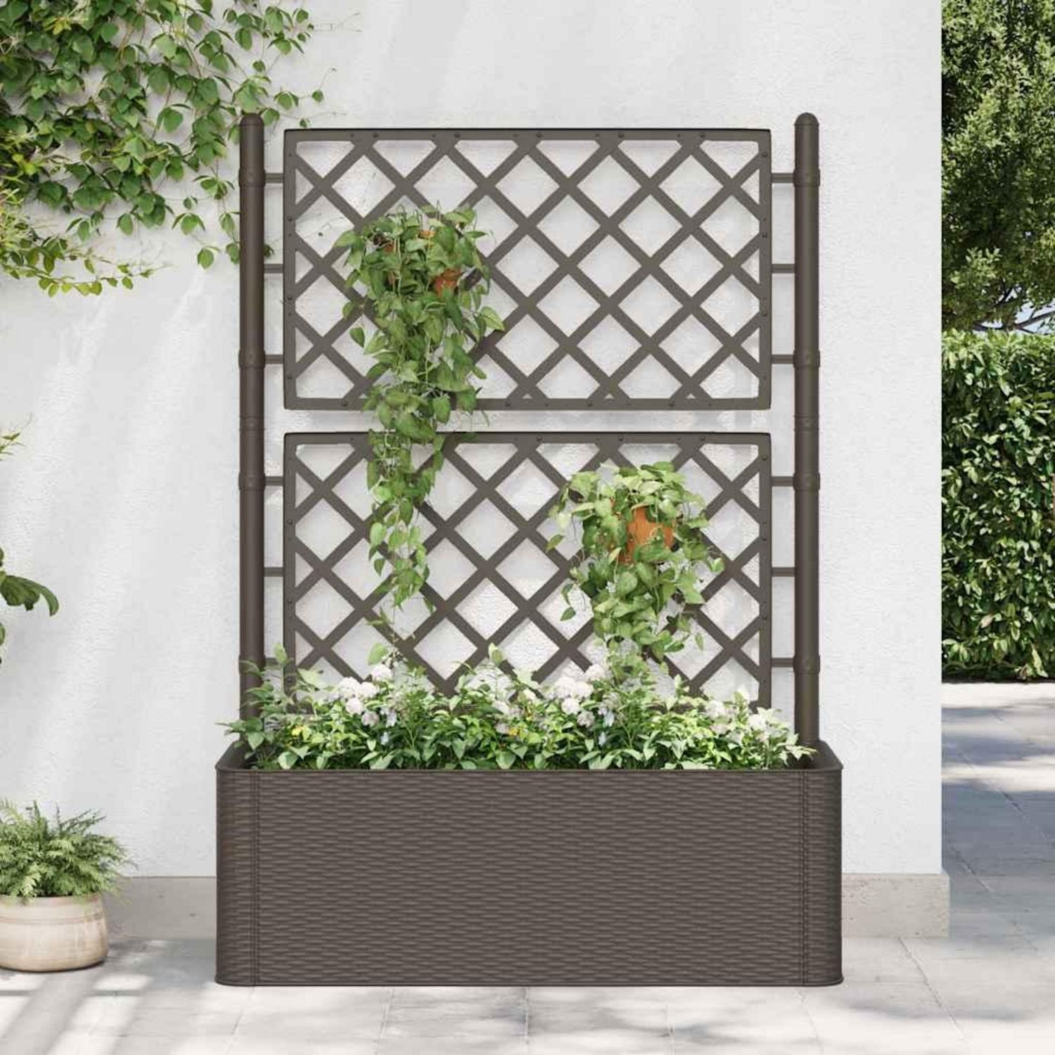 Creez une belle toile de fond pour vos fleurs avec un lit sureleve elegant, fonctionnel et unique ! Cette jardiniere en treillis a une grande boîte a fleurs qui peut accueillir un grand nombre de plantes et de fleurs vertes.