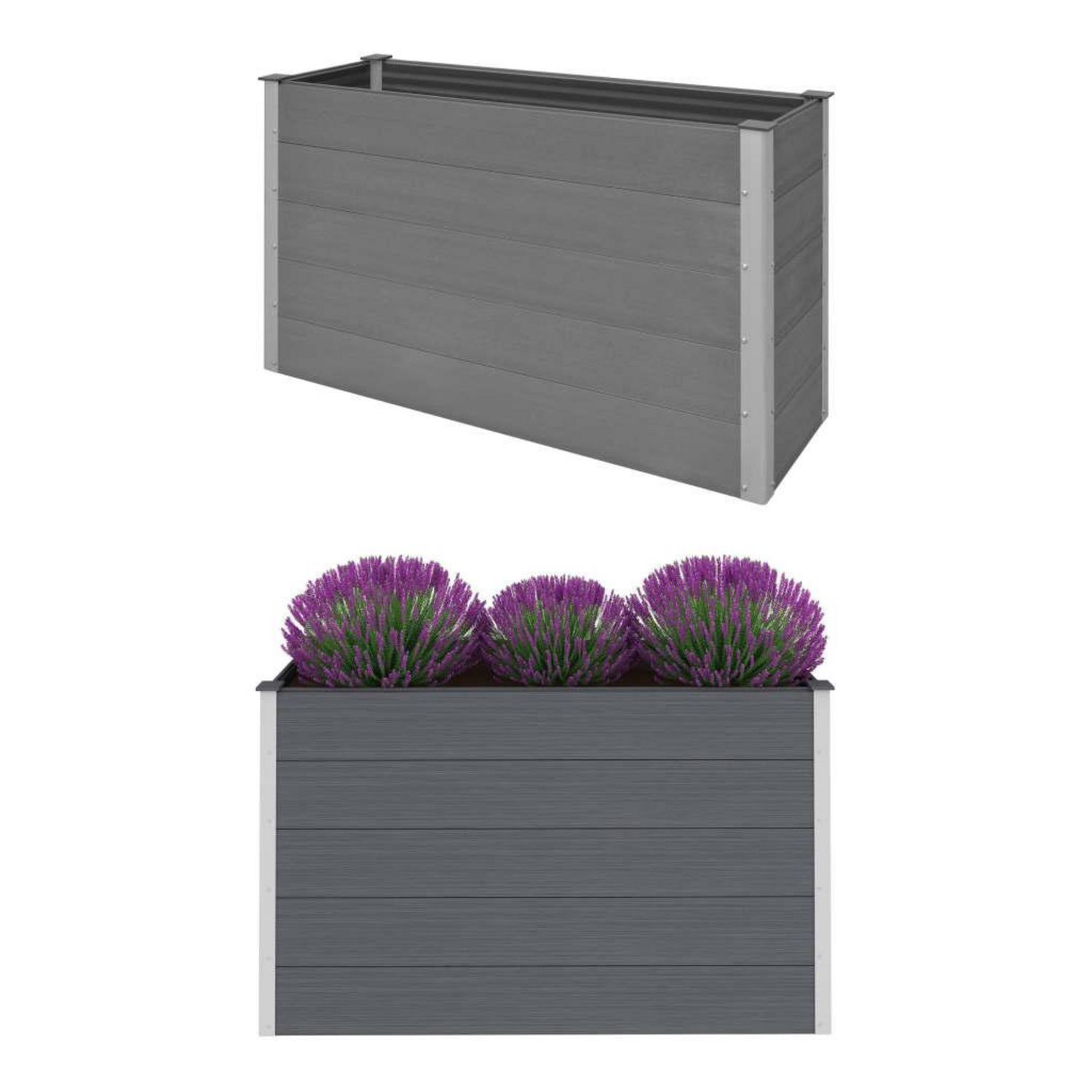 La jardiniere est faite de composite bois-plastique, ce qui la rend durable, resistante aux intemperies et adaptee pour une utilisation en exterieur. Elle peut accueillir un nombre considerable de plantes vertes et de fleurs. Avec son design elegant et moderne, la jardiniere ajoutera une touche de style sophistique a votre espace de vie d'exterieur. L'assemblage est facile.