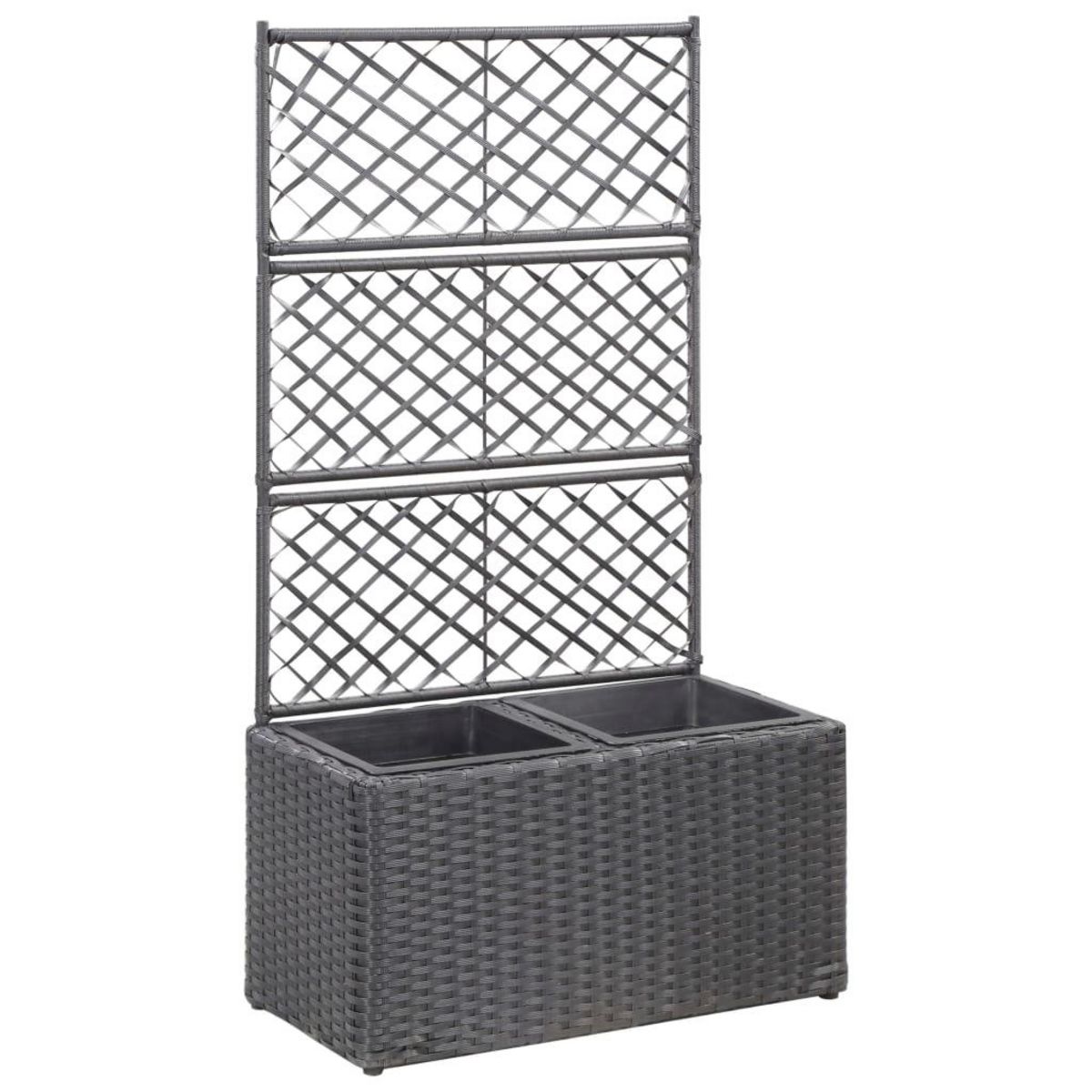 Ce lit sureleve en treillis avec 2 pots amovibles en resine tressee, dotee d'un treillis integre, ajoutera une touche de charme a tout espace exterieur. La jardiniere en treillis possede 2 grandes boîtes a fleurs, qui peut accueillir un nombre considerable de plantes et de fleurs vertes. Le treillis